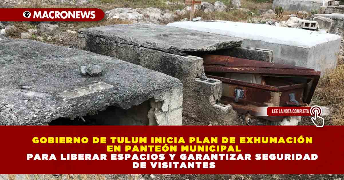 TULUM a 16 de octubre .— Debido al evidente deterioro y la falta de espacio en el panteón municipal, el Ayuntamiento de Tulum, a través de la Dirección de Panteones, Rastros y Mercados, inició la elaboración de un plan de exhumación de tumbas que llevan más de dos décadas en abandono, informó su titular, Ana María Méndez.