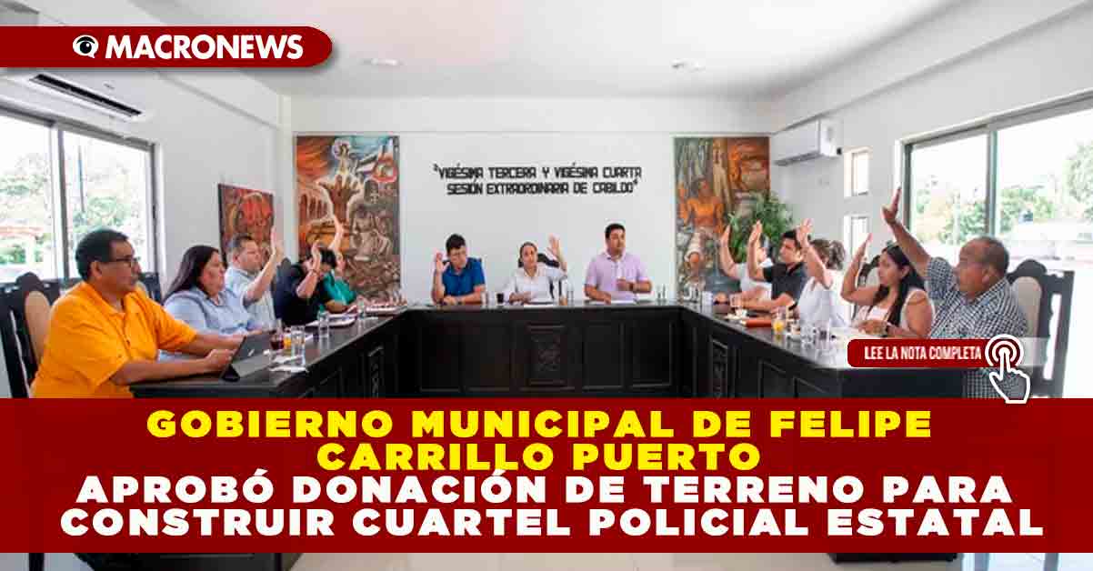 El gobierno municipal de Felipe Carrillo Puerto, encabezado por la presidenta Mary Hernández, aprobó este jueves la donación de un predio al Gobierno del Estado para la edificación de un nuevo cuartel de la Policía Estatal Preventiva en el municipio que crece para todos.