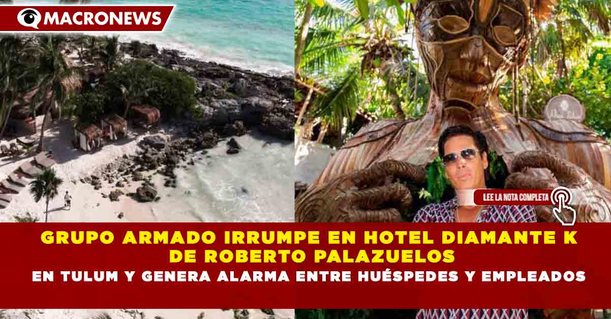Redacción Macronews.- Un grupo armado irrumpió en elhotel Diamante K, propiedad del empresario y actor Roberto Palazuelos, ubicado en el municipio de Tulum, Quintana Roo, lo que generó alarma entre huéspedes y personal del complejo turístico.