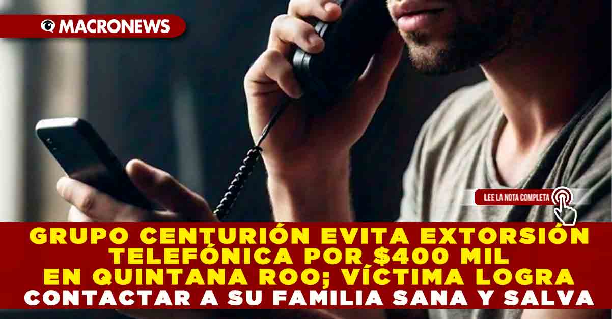 Redacción Macronews.- La rápida intervención del Grupo Centurión logró frustrar un intento de extorsión telefónica en Quintana Roo, evitando que un ciudadano perdiera 400 mil pesos. La víctima había recibido mensajes en los que se le exigía dicha cantidad a cambio de liberar a su pareja y a los hijos de ella, quienes supuestamente estaban secuestrados mientras viajaban desde Chiapas hacia Tulum.