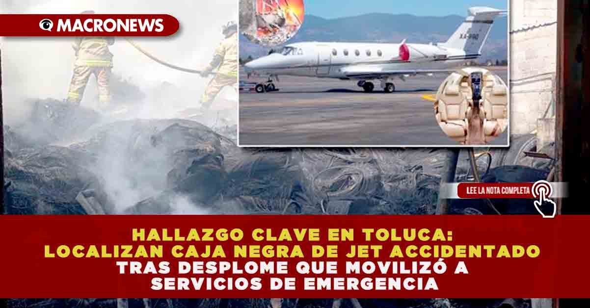 Redacción Macronews.- Tras el siniestro ocurrido en las inmediaciones del Aeropuerto Internacional de Toluca (AIT), las autoridades federales confirmaron la localización de la caja negra del jet privado accidentado. Este dispositivo, fundamental para el esclarecimiento de las causas del percance, fue recuperado por personal especializado en la zona del impacto, donde la aeronave sufrió daños estructurales de consideración. La Agencia Federal de Aviación Civil (AFAC) ha tomado custodia del equipo para iniciar el protocolo de extracción de datos, lo que permitirá reconstruir los últimos minutos de vuelo con una precisión del 100% en las grabaciones de voz y parámetros técnicos.