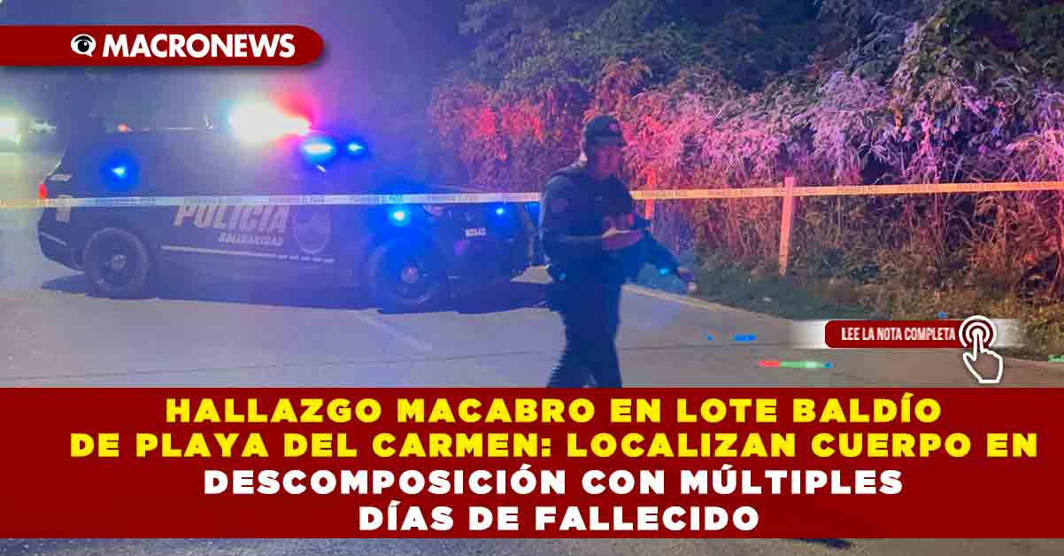 Redacción Macronews.- Un ciudadano que transitaba por la colonia Aviación en Playa del Carmen realizó un macabro hallazgo anoche, al descubrir el cadáver de un hombre en avanzado estado de descomposición dentro de un lote baldío. El cuerpo, que preliminarmente se estima llevaba varios días sin vida, fue encontrado entre la maleza en el cruce de la avenida Aviación y la calle 45, movilizando de inmediato a los elementos de la Secretaría de Seguridad Ciudadana para acordonar la zona.