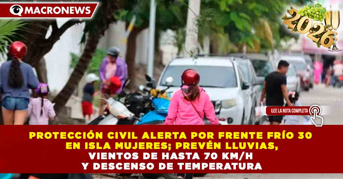 Redacción Macronews.- La Coordinación Municipal de Protección Civil y Bomberos informó a las isleñas e isleños sobre el desplazamiento del Frente Frío Número 30, el cual generará condiciones meteorológicas adversas en el municipio de Isla Mujeres durante los próximos días.