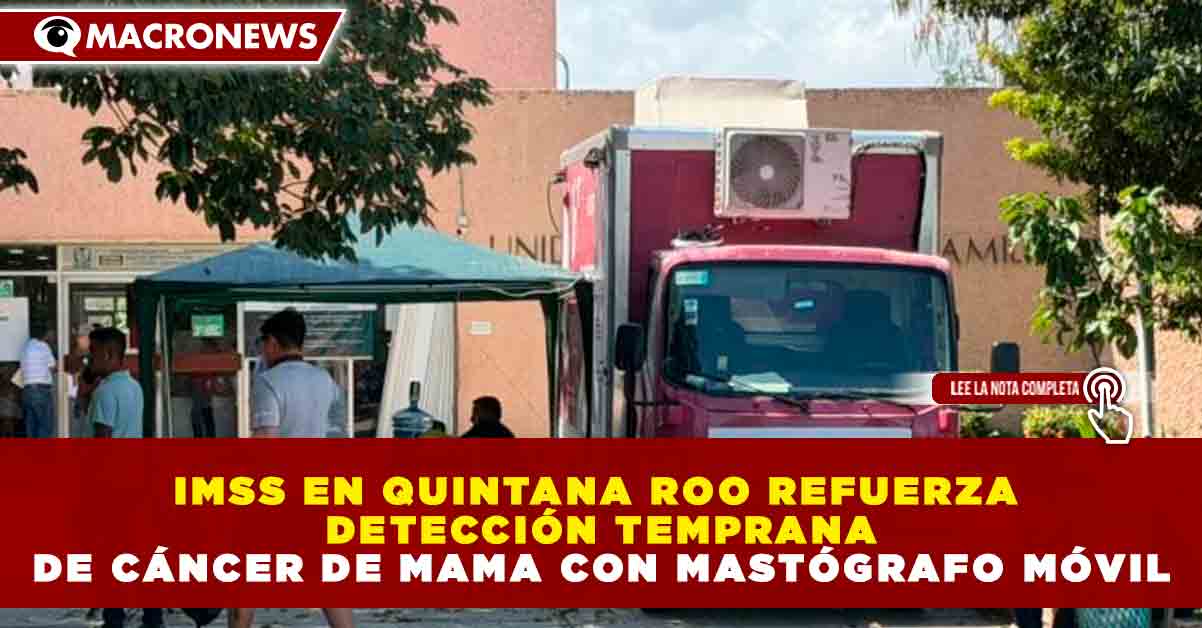 Redacción Macronews.- La detección temprana del cáncer de mama puede salvar vidas, y el Instituto Mexicano del Seguro Social en Quintana Roo refuerza acciones preventivas durante todo el año mediante el despliegue de su mastógrafo móvil, que en abril recorrerá diversos municipios ofreciendo servicios gratuitos para la identificación oportuna de esta enfermedad.