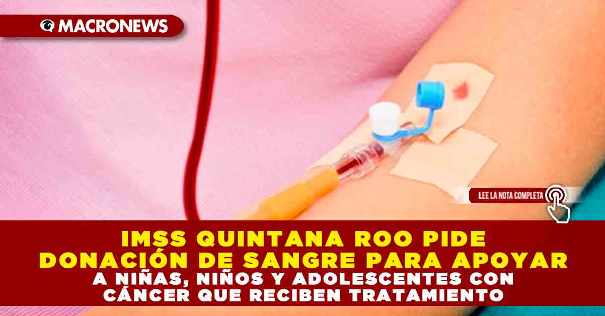 Redacción Macronews por Renán Moguel.- El Instituto Mexicano del Seguro Social (IMSS) en Quintana Roo hizo un llamado urgente a la población para sumarse a la donación altruista de sangre, un acto solidario que representa una oportunidad de vida para niñas, niños y adolescentes con cáncer.