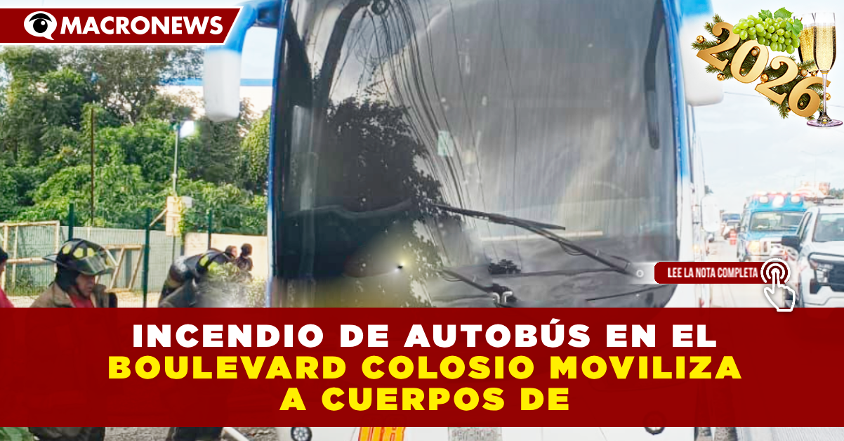 INCENDIO DE AUTOBÚS EN EL BOULEVARD COLOSIO MOVILIZA A CUERPOS DE EMERGENCIA EN CANCÚN