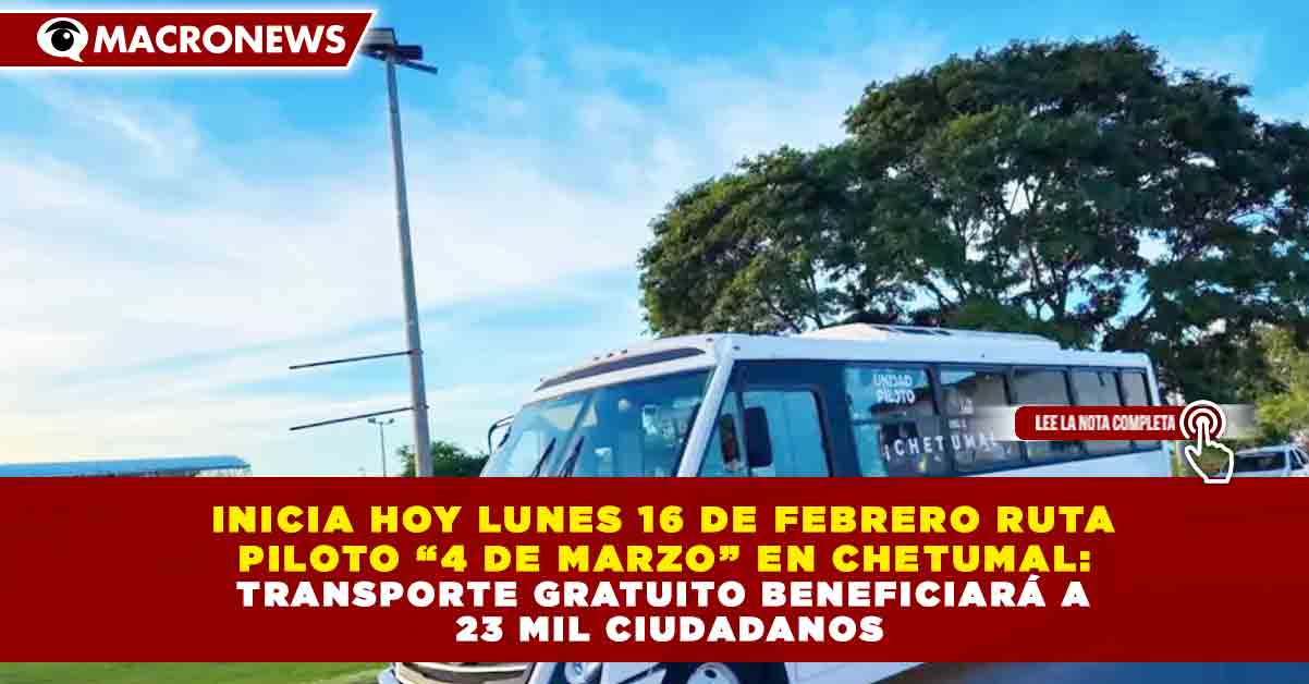 Redacción Macronews.- Este lunes 16 de febrero marca un hito en la capital del estado con el arranque oficial de la Ruta Piloto «4 de Marzo» del sistema Tu Ruta Chetumal. Tras más de 15 años de abandono en el transporte público masivo, el Gobierno de Quintana Roo, a través del Instituto de Movilidad (Imoveqroo), reactiva hoy este servicio que beneficia de manera directa a más de 23 mil personas, conectando sectores estratégicos que carecían de conectividad eficiente.