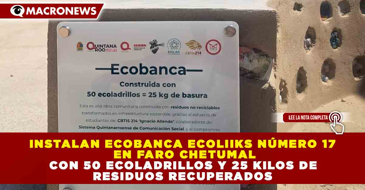 Redacción Macronews.- La Asociación Civil Ecoliiks instaló en Chetumal la Ecobanca Ecoliiks número 17, una obra comunitaria colocada en las instalaciones de FARO Chetumal, que promueve la educación ambiental, la reutilización de residuos no reciclables y el trabajo colaborativo entre instituciones educativas y organismos públicos.