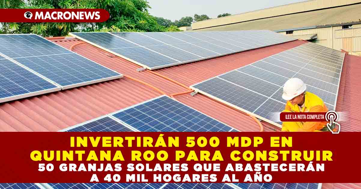 - Invertirán 500 mdp en Quintana Roo para construir 50 granjas solares que abastecerán a 40 mil hogares