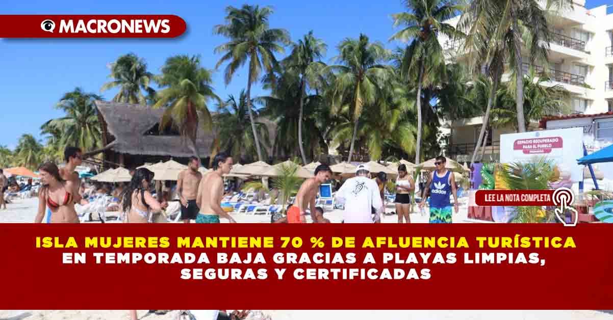 “Las playas de Isla Mujeres son únicas, cuentan con certificación Blue Flag y Playa Platino, lo cual coloca a Playa Norte y Playa Centro entre las mejores del mundo por su limpieza, orden, seguridad, sustentabilidad, calidad del agua y educación ambiental, entre otros criterios.”
