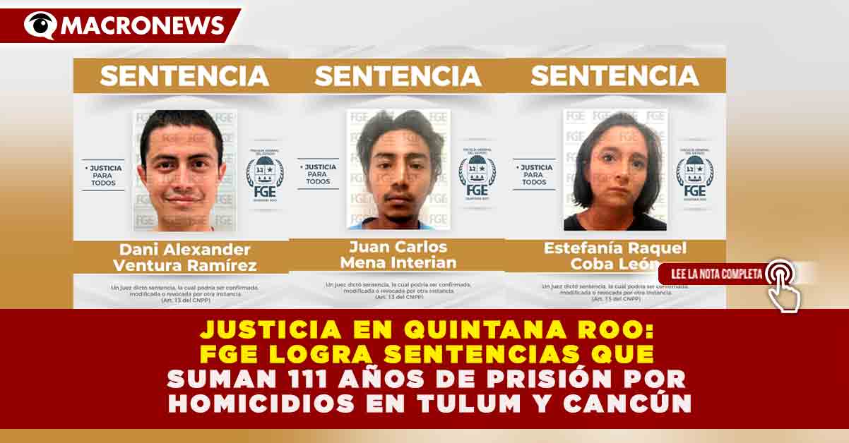 JUSTICIA EN QUINTANA ROO: FGE LOGRA SENTENCIAS QUE SUMAN 111 AÑOS DE PRISIÓN POR HOMICIDIOS EN TULUM Y CANCÚN