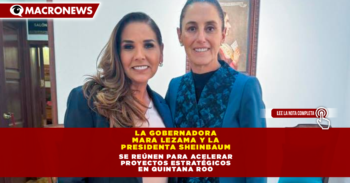 CIUDAD DE MÉXICO / QUINTANA ROO. – Con el objetivo de revisar los avances reales y las prioridades de inversión, la gobernadora Mara Lezama sostuvo una reunión de trabajo con la presidenta de México, Claudia Sheinbaum Pardo. En este encuentro, ambas mandatarias analizaron el estado actual de las obras de infraestructura y los proyectos sociales que se ejecutan en el estado, asegurando que cada acción gubernamental se traduzca en beneficios tangibles para la población. Lezama agradeció el respaldo continuo de la Presidenta hacia el pueblo quintanarroense, destacando que esta labor conjunta permite aterrizar inversiones que generan empleos y bienestar en los once municipios de la entidad. El enfoque de la reunión fue claro: optimizar tiempos y alcances para que la prosperidad llegue a todos los rincones de Quintana Roo.