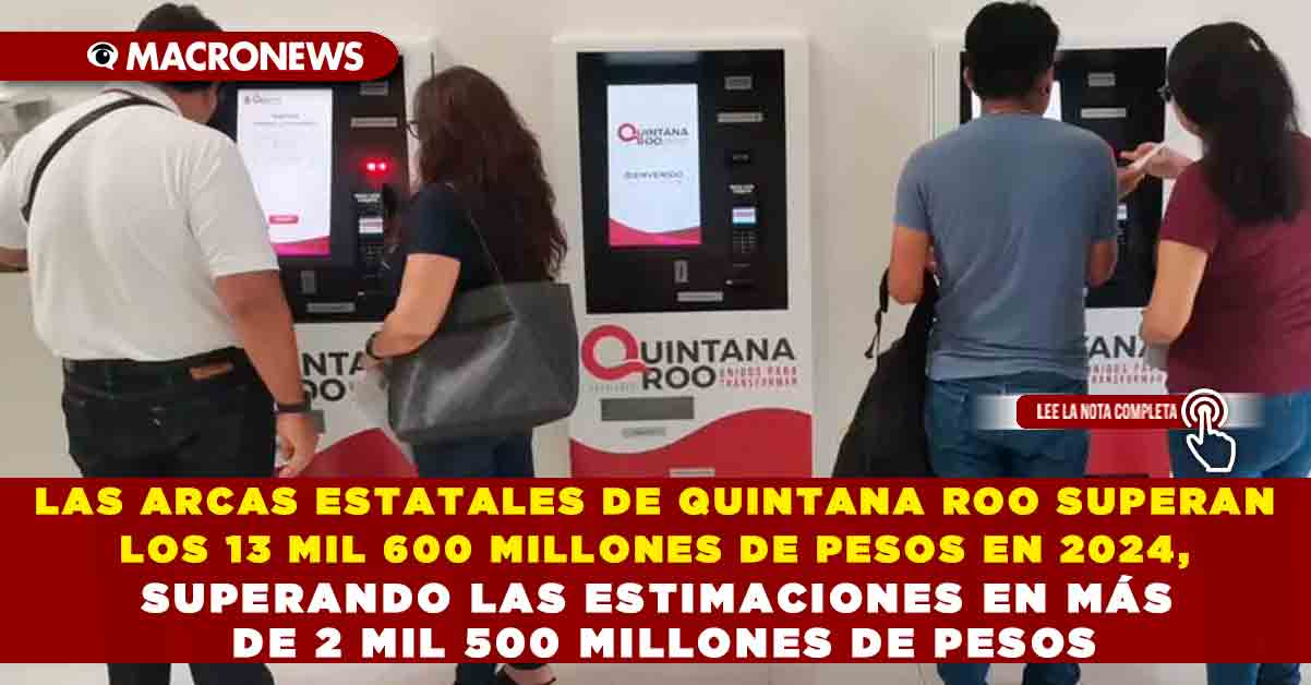 Las arcas estatales en Quintana Roo cerraron en 2024 con ingresos superiores a  los 13 mil 608 millones de pesos, y superaron por más de dos mil 500 millones las estimaciones para el ejercicio fiscal 2024.