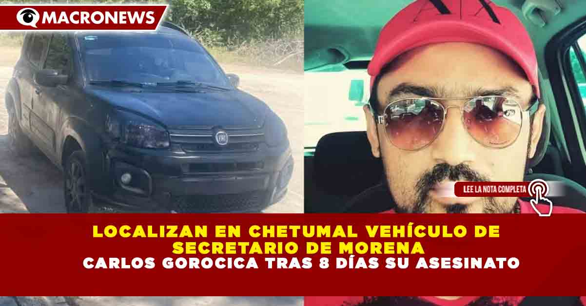 Redacción Macronews.- Autoridades localizaron el vehículo perteneciente a Carlos Hernández Gorocica, quien fue asesinado recientemente en la ciudad de Chetumal, como parte de las diligencias que se desarrollan para esclarecer el crimen ocurrido en la capital del estado de Quintana Roo.