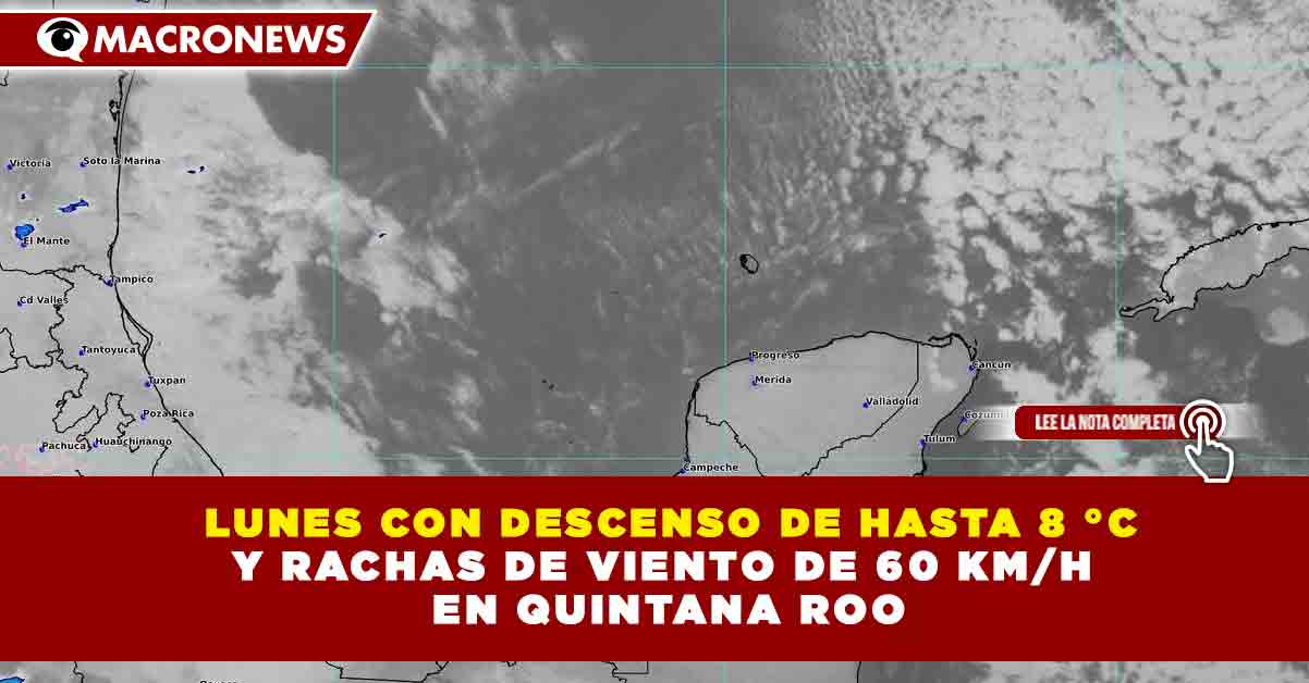 Redacción Macronews.- Este lunes Quintana Roo amaneció con un marcado descenso de temperatura y fuertes rachas de viento, derivado de la influencia del frente frío número 32, lo que ha generado condiciones frescas, oleaje elevado y recomendaciones preventivas en varios municipios de la entidad.