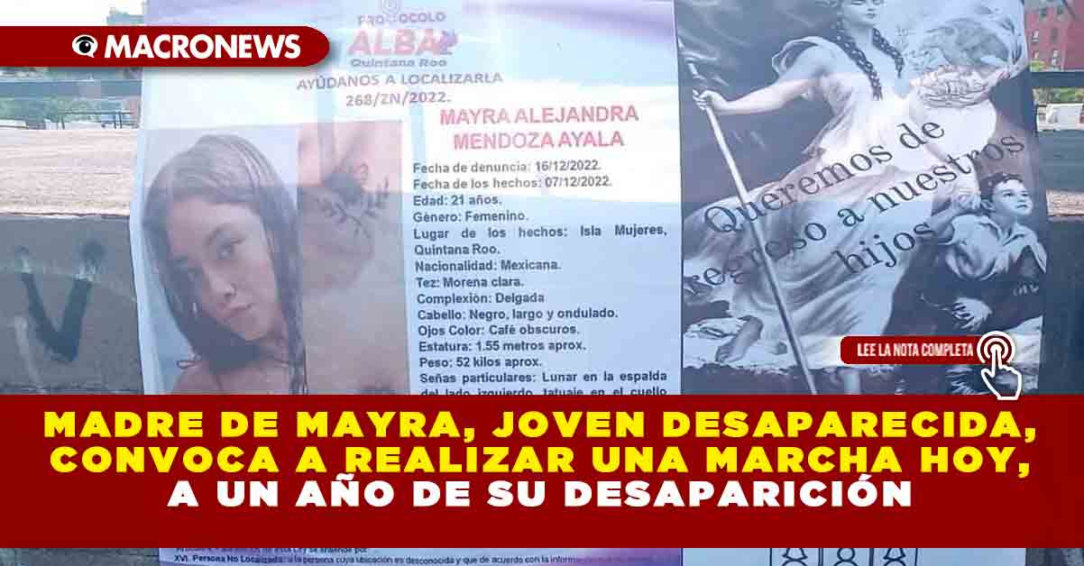 REDACCIÓN MACRONEWS POR DARSET RIVERO.— María del Rosario, madre de Mayra, la joven desaparecida hace un año, convocó a una marcha hoy a las 6 de la tarde.