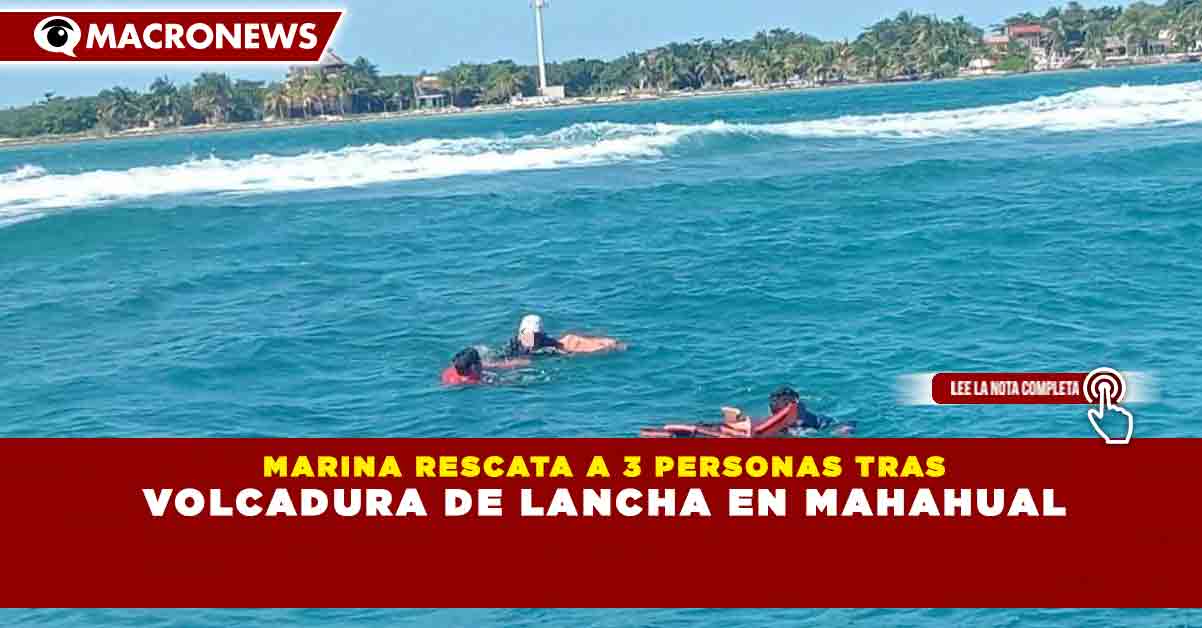 Redacción Macronews.- Elementos de la Secretaría de Marina rescataron con éxito a tres personas luego de la volcadura de una lancha ocurrida frente a las costas de Mahahual, en el sur de Quintana Roo, incidente que activó de inmediato los protocolos de auxilio marítimo para salvaguardar la vida humana en el mar.