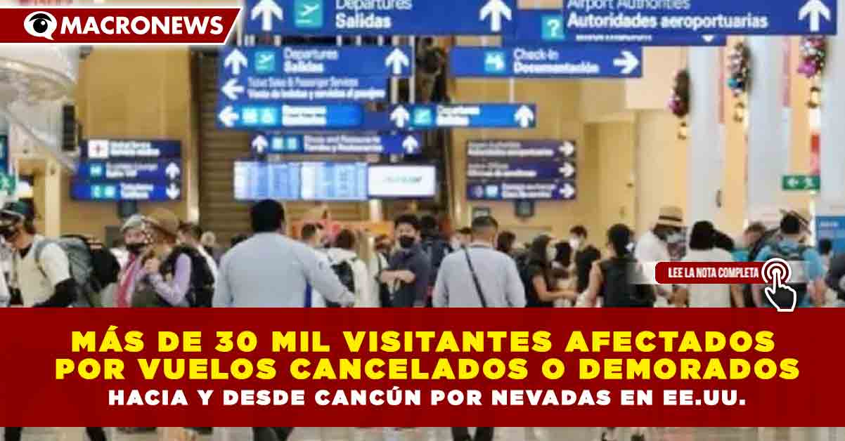 Redacción Macronews por Renán Moguel.- Las intensas nevadas registradas en Estados Unidos incrementaron de manera significativa el número de vuelos cancelados y demorados hacia y desde Cancún. Desde el pasado fin de semana y hasta este lunes, se han reportado 74 vuelos cancelados y 88 demorados, afectando a alrededor de 30 mil 600 turistas.
