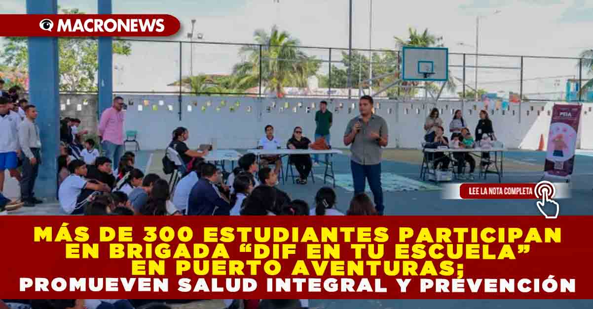 Redacción Macronews.- Playa del Carmen, Quintana Roo, 5 de noviembre de 2025.— Con el objetivo de fortalecer el bienestar físico, emocional y social de niñas, niños y adolescentes, el Sistema DIF Playa del Carmen llevó a cabo la brigada “DIF en tu escuela” en el domo de la Telesecundaria Luis Manuel Aguilar Cruz, ubicada en la alcaldía de Puerto Aventuras. El evento reunió a más de 300 estudiantes, quienes participaron en actividades informativas, recreativas y preventivas enfocadas en salud integral, valores y autocuidado.