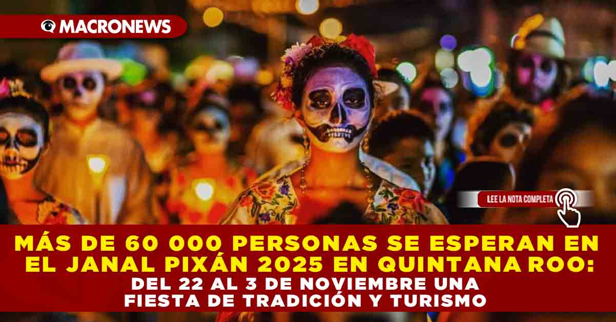 Redacción Macronews.- El estado de Quintana Roo se prepara para una de las celebraciones más vibrantes del año: el Día de Muertos 2025. Con la llegada de octubre, la magia del Janal Pixán —la tradicional “comida de las ánimas” maya— invade municipios clave como Cancún, Playa del Carmen o Chetumal, con actividades gratuitas que reflejan el encuentro entre lo ancestral y lo turístico. Según datos de prensa local, en Cancún se espera superar los 60 000 asistentes, de los cuales alrededor de 15 000 podrían ser turistas.