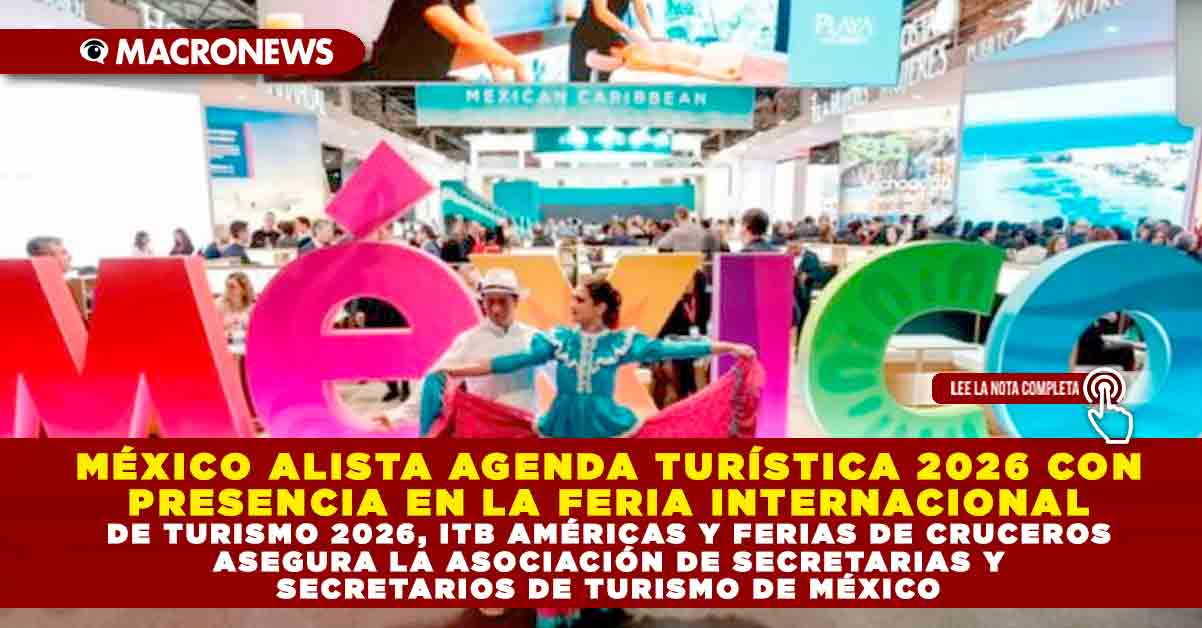 Redacción Macronews por Renán Moguel.- El presidente de la Asociación de Secretarias y Secretarios de Turismo de México (ASETUR), Bernardo Cueto Riestra, presentó la carpeta de actividades turísticas 2026, con la que el país participará en las principales ferias internacionales del sector, con la representación de las 32 entidades federativas, como parte de la estrategia para fortalecer una de las actividades clave de la economía nacional.