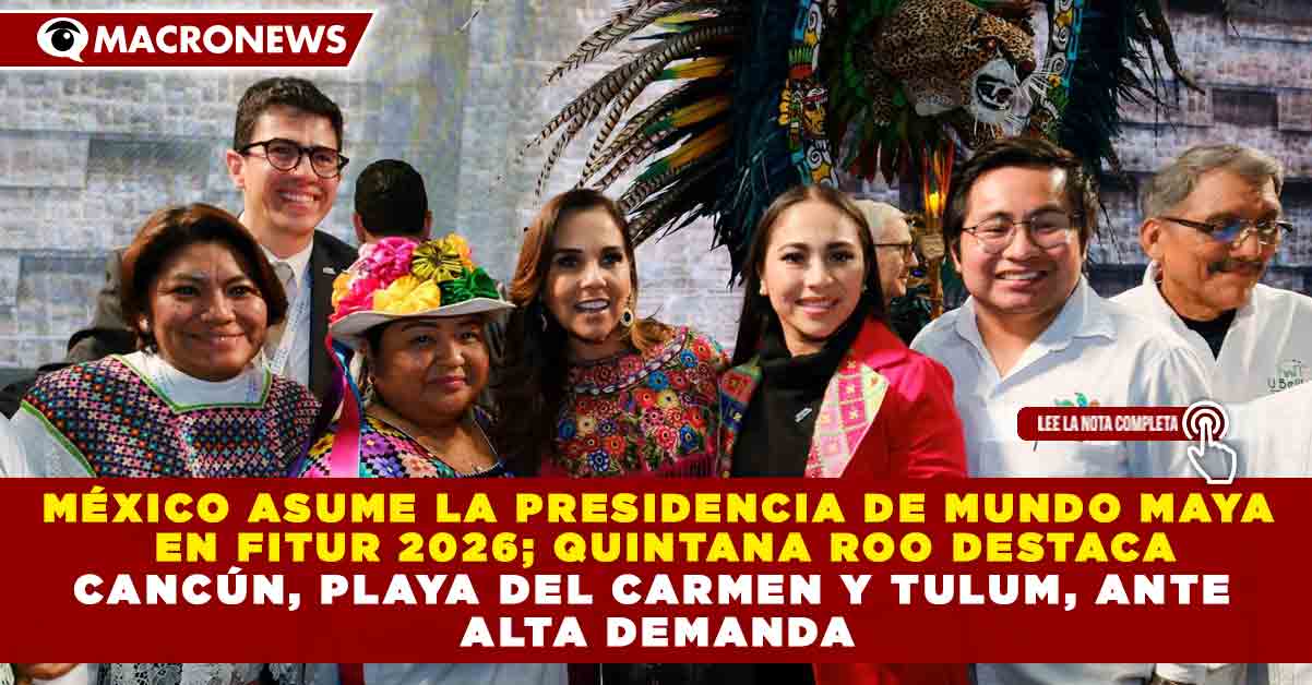 Redacción Macronews.- En el marco de la Feria Internacional de Turismo (FITUR) 2026, México recibió de Belice la presidencia de la Organización Mundo Maya, acto oficial realizado en el pabellón de México en Madrid, donde Quintana Roo fue reconocido por su modelo de turismo comunitario, con Maya Ka´an como referente nacional e internacional.