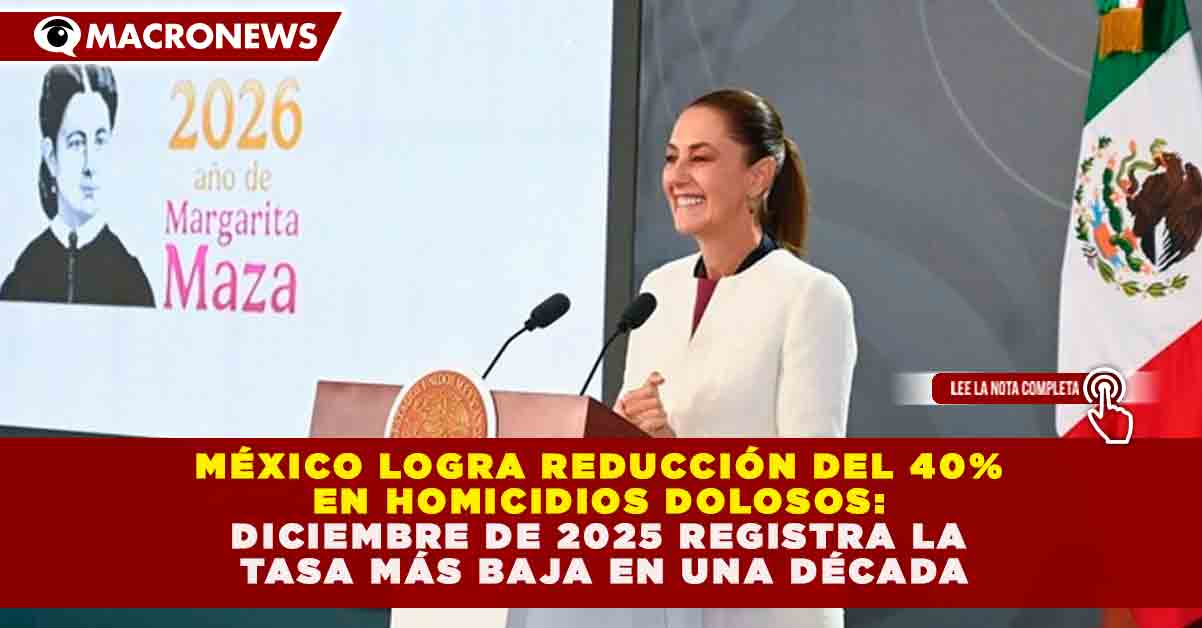 MÉXICO LOGRA REDUCCIÓN DEL 40% EN HOMICIDIOS DOLOSOS: DICIEMBRE DE 2025 REGISTRA LA TASA MÁS BAJA EN UNA DÉCADA