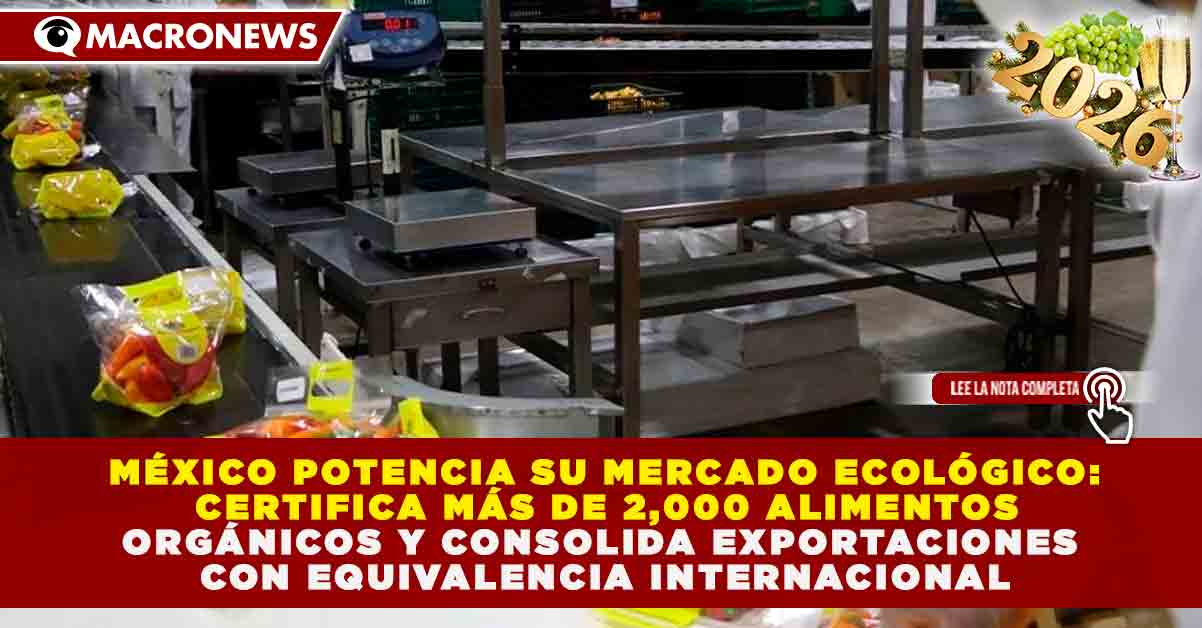 MÉXICO POTENCIA SU MERCADO ECOLÓGICO: CERTIFICA MÁS DE 2,000 ALIMENTOS ORGÁNICOS Y CONSOLIDA EXPORTACIONES CON EQUIVALENCIA INTERNACIONAL