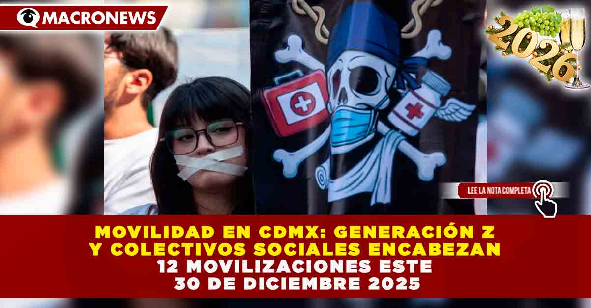 Redacción Macronews.- La Ciudad de México enfrenta un cierre de año con intensa actividad social este martes 30 de diciembre de 2025. La Secretaría de Seguridad Ciudadana (SSC-CDMX) ha confirmado una agenda que incluye dos concentraciones principales, dos citas con autoridades y ocho eventos de esparcimiento, sumando un total de 12 movilizaciones que impactarán la circulación en puntos neurálgicos de las alcaldías Cuauhtémoc e Iztapalapa. Destaca la participación de la denominada Generación Z, que lidera las acciones ciudadanas en demanda de servicios de salud dignos.