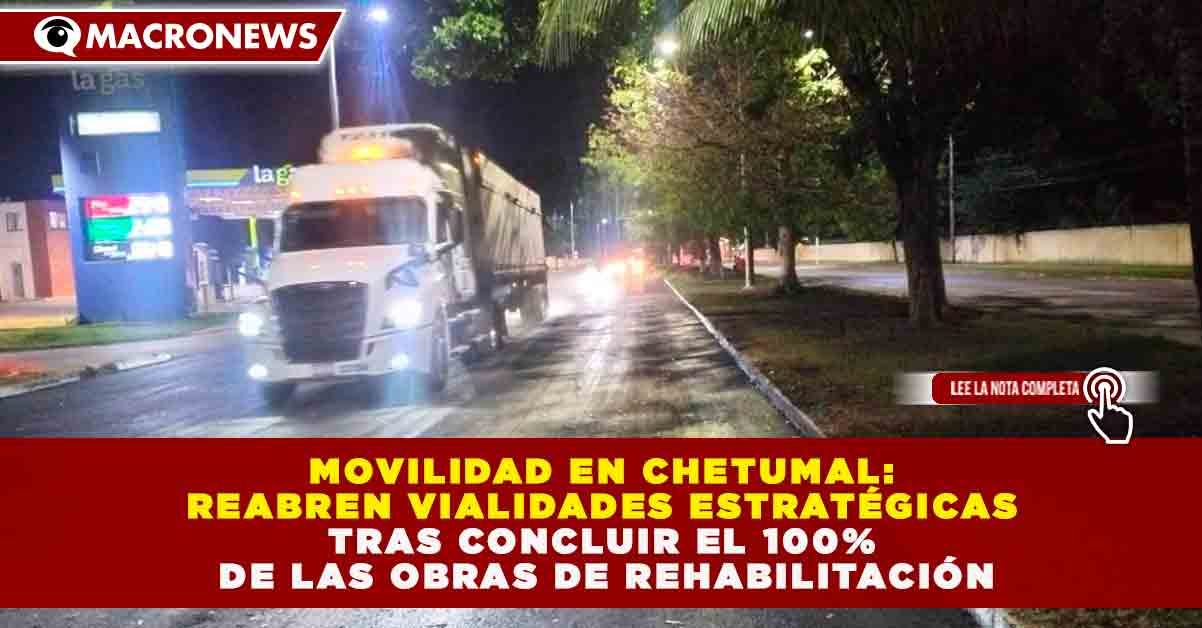MOVILIDAD EN CHETUMAL: REABREN VIALIDADES ESTRATÉGICAS TRAS CONCLUIR EL 100% DE LAS OBRAS DE REHABILITACIÓN