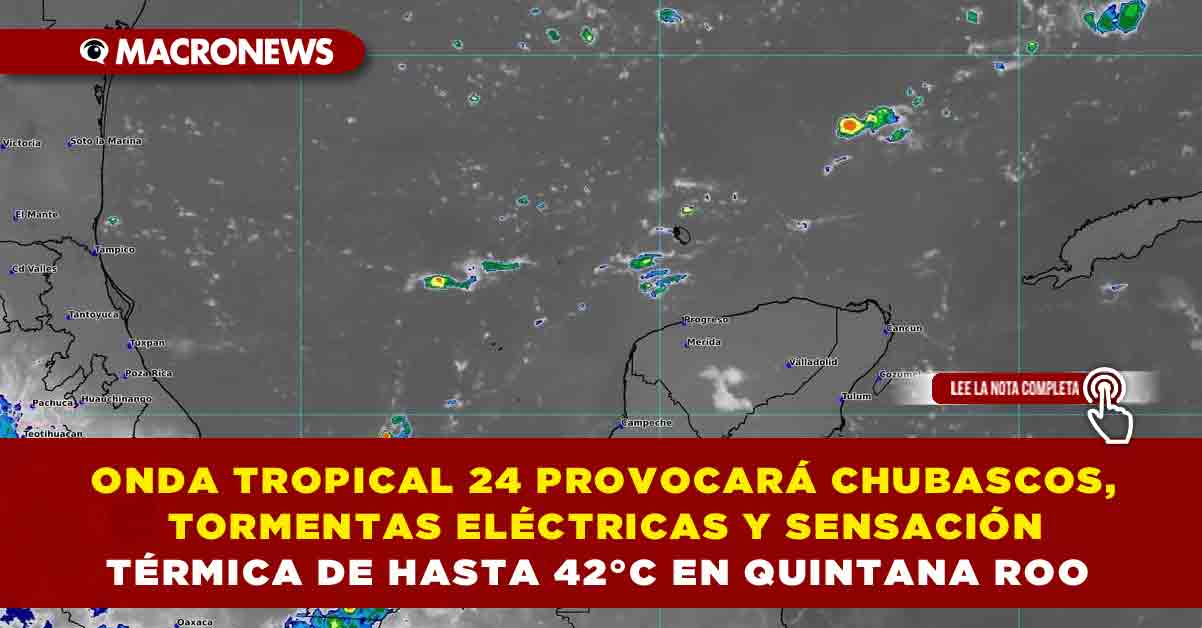 El acercamiento de una onda tropical (número Veinticuatro) que se localiza sobre el occidente del mar Caribe; desde islas Caimán hasta el occidente de Panamá, Centroamérica, se desplaza lentamente hacia el oeste y la entrada de humedad hacia la región peninsular, mantendrán en el estado de Quintana Roo cielo parcialmente nublado con incremento de nublados durante el transcurso del día, intervalos de chubascos con lluvias puntuales fuertes acompañadas de actividad eléctrica y rachas de viento en zonas de tormenta, ambiente muy caluroso durante el día y cálido a caluroso por la noche y al amanecer. Viento con rachas de 50 km/h principalmente sobre las zonas de costa del estado.