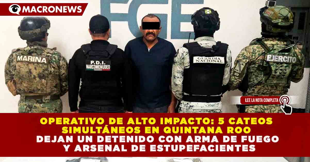 Redacción Macronews.- En una ofensiva coordinada para desarticular células delictivas en el estado, la Fiscalía General del Estado (FGE) de Quintana Roo, en conjunto con las Fuerzas Armadas, ejecutó cinco órdenes de cateo en los municipios de Solidaridad y Othón P. Blanco este 19 de enero de 2026. La operación, que contó con la participación de la Guardia Nacional, la Secretaría de la Defensa Nacional y la Secretaría de Marina, resultó en el aseguramiento de drogas, un arma de fuego de calibre exclusivo y equipo táctico, logrando la captura de un presunto generador de violencia identificado como Rogelio Alberto “N”, alias “El Beliceño”.