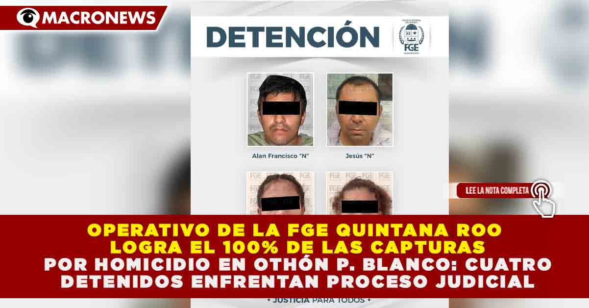 Redacción Macronews.- En una operación de inteligencia que abarcó tres ciudades y la colaboración interestatal, la Fiscalía General del Estado (FGE) de Quintana Roo ha logrado el cumplimiento de cuatro órdenes de aprehensión contra los probables responsables de un homicidio calificado perpetrado el 20 de diciembre de 2025. Con la reciente captura de Alan Francisco “N” y Jesús “N”, las autoridades han completado la detención del grupo señalado por el crimen, elevando a 4 el total de imputados vinculados directamente con este suceso de alto impacto en el municipio de Othón P. Blanco.
