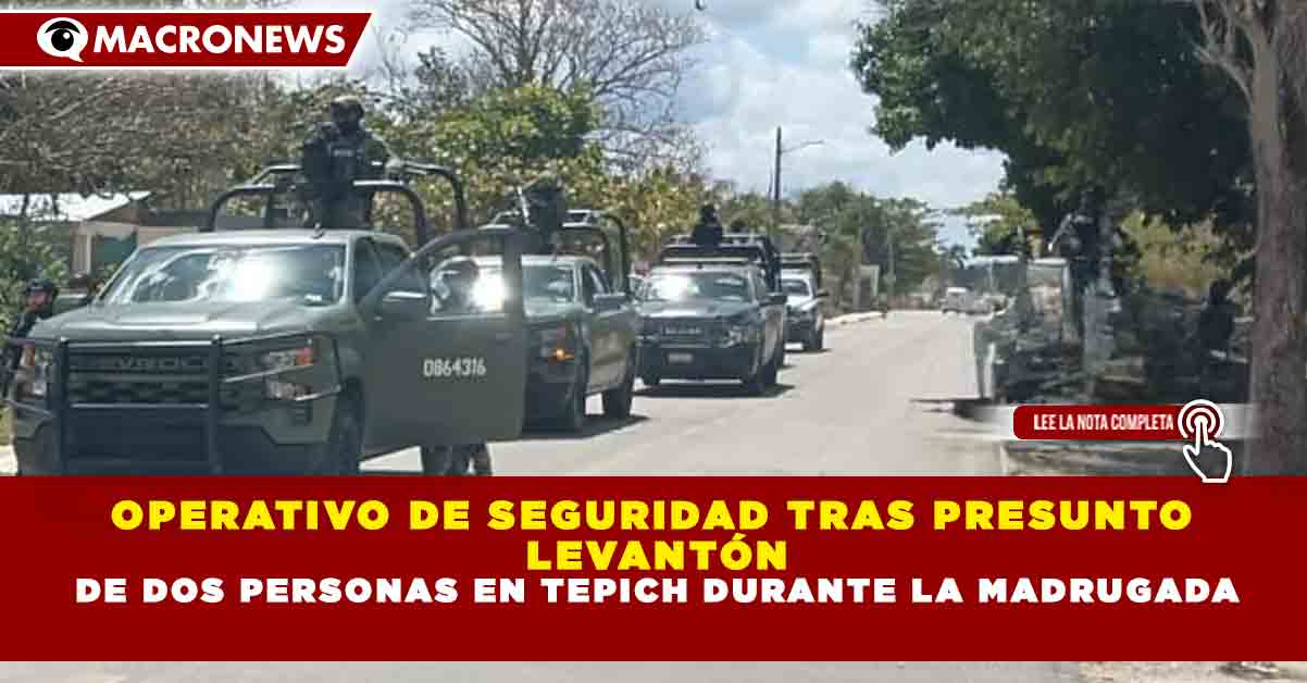 Redacción Macronews.- Un fuerte operativo de seguridad fue desplegado en la comunidad de Tepich, en el municipio de Felipe Carrillo Puerto, luego del reporte sobre la presunta privación ilegal de la libertad de dos personas registrada durante la madrugada del martes. Elementos de los tres órdenes de gobierno realizan recorridos y acciones de búsqueda en la zona para localizar a las víctimas.