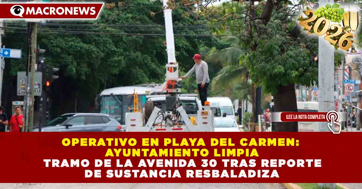 OPERATIVO EN PLAYA DEL CARMEN: AYUNTAMIENTO LIMPIA TRAMO DE LA AVENIDA 30 TRAS REPORTE DE SUSTANCIA RESBALADIZA