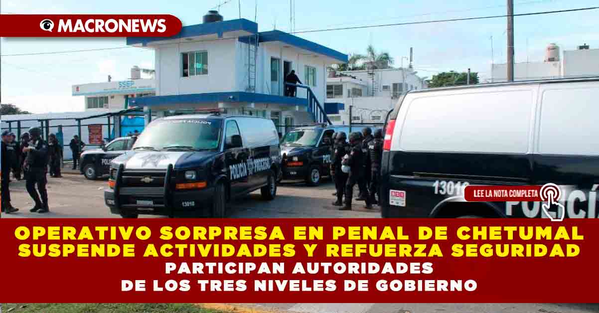 Redacción Macronews.- La Secretaría de Seguridad Ciudadana de Quintana Roo (SSC) realizó un operativo sorpresa de supervisión integral en el Centro Penitenciario de Chetumal, con el objetivo de fortalecer las medidas de control, seguridad y disciplina dentro del recinto. Como parte de estas acciones, fueron suspendidas temporalmente las actividades cotidianas, incluyendo visitas, trámites y servicios administrativos, para garantizar la integridad del personal penitenciario y de las personas privadas de la libertad.