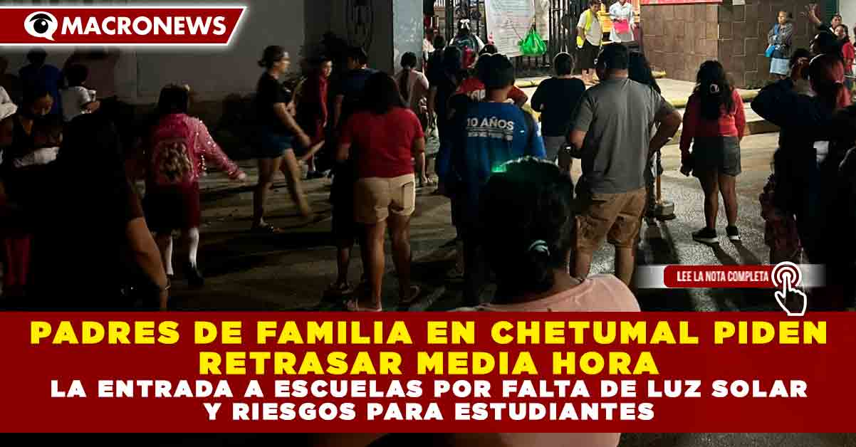 Redacción Macronews.- La Asociación Alianza por la Educación solicitó formalmente a la Secretaría de Educación de Quintana Roo que se valore la posibilidad de retrasar 30 minutos los horarios de entrada en escuelas públicas de nivel básico, debido a la falta de iluminación natural durante las mañanas de la temporada invernal. La petición busca garantizar mayor seguridad para los estudiantes que deben salir de sus hogares en la oscuridad, exponiéndose a riesgos en su traslado hacia los planteles.