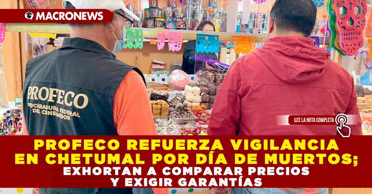 Redacción Macronews.- Con motivo de la celebración del Día de Muertos, la Procuraduría Federal del Consumidor (Profeco) implementará un operativo de vigilancia en diversos puntos de Chetumal para verificar que los establecimientos cumplan con las garantías de venta de productos alusivos a esta temporada. Así lo informó José Luis Pineda Díaz, director de la Procuraduría en la zona caribeña, quien exhortó a la ciudadanía a comparar precios y exigir el cumplimiento de las condiciones ofrecidas al momento de la compra.