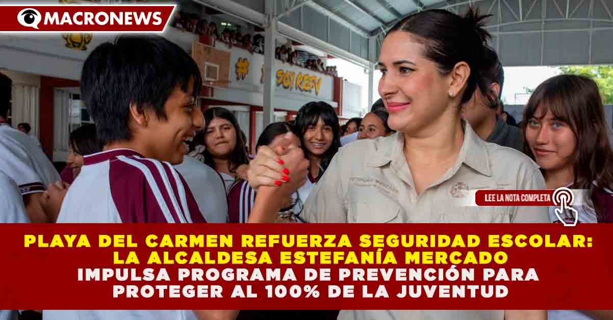 Redacción Macronews.– Con el objetivo de consolidar entornos escolares seguros y reducir los índices de conductas de riesgo, la presidenta municipal de Solidaridad, Estefanía Mercado, encabezó el lanzamiento del programa “Prevención a través de la Educación”. Esta iniciativa, coordinada con la Fiscalía General del Estado, busca impactar positivamente en la formación integral de miles de estudiantes en Playa del Carmen, priorizando la salud mental y la erradicación de las adicciones como ejes centrales para la construcción de una cultura de paz en el municipio.