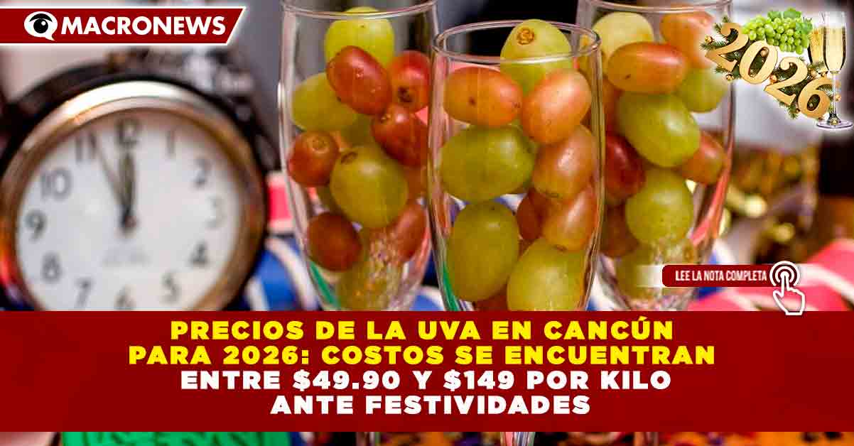 PRECIOS DE LA UVA EN CANCÚN PARA 2026: COSTOS OSCILAN ENTRE $49.90 Y $149 POR KILO ANTE FESTIVIDADES