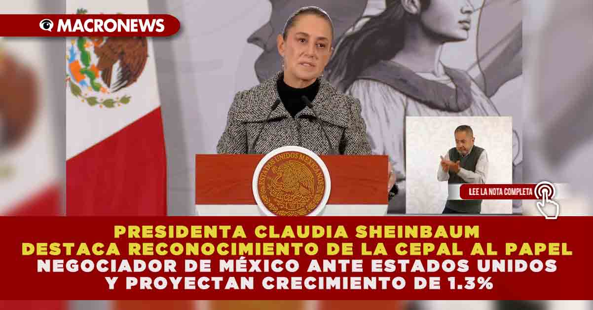PRESIDENTA CLAUDIA SHEINBAUM DESTACA RECONOCIMIENTO DE LA CEPAL AL PAPEL NEGOCIADOR DE MÉXICO ANTE ESTADOS UNIDOS Y PROYECTAN CRECIMIENTO DE 1.3%