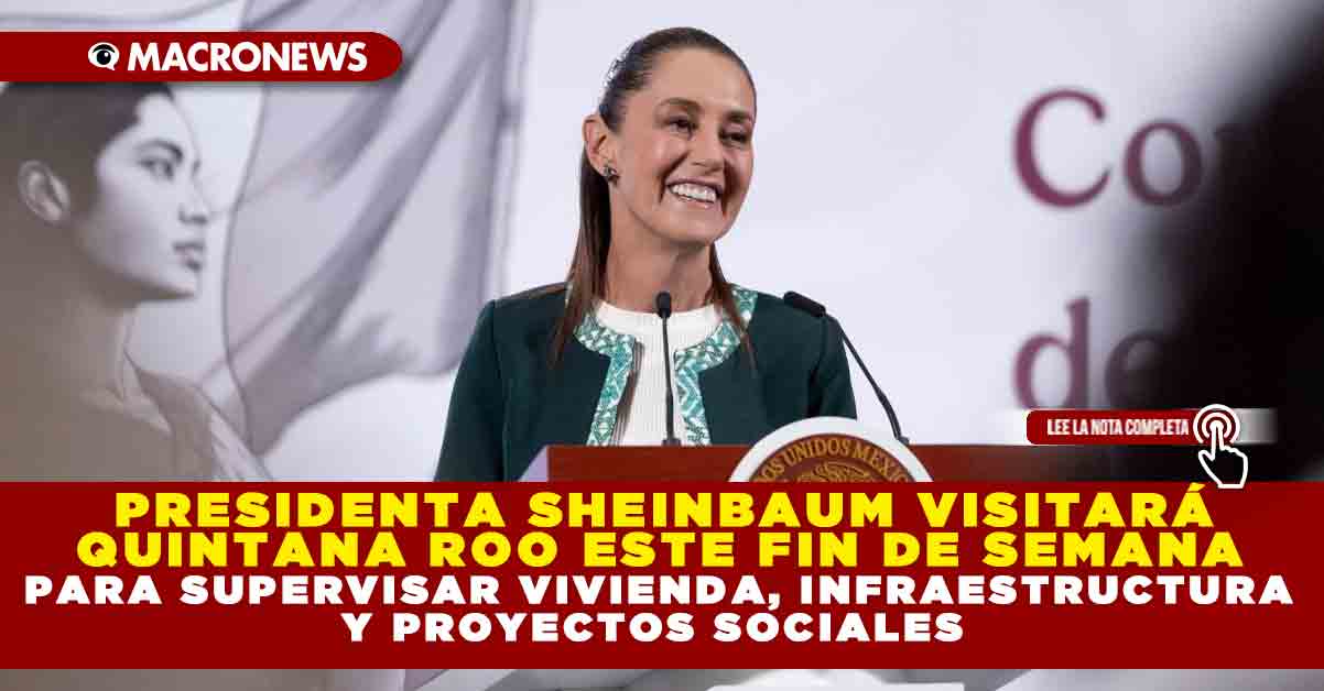 La presidenta Claudia Sheinbaum visitará Quintana Roo este fin de semana para supervisar y fortalecer proyectos clave en materia de vivienda, programas sociales, educación e infraestructura.