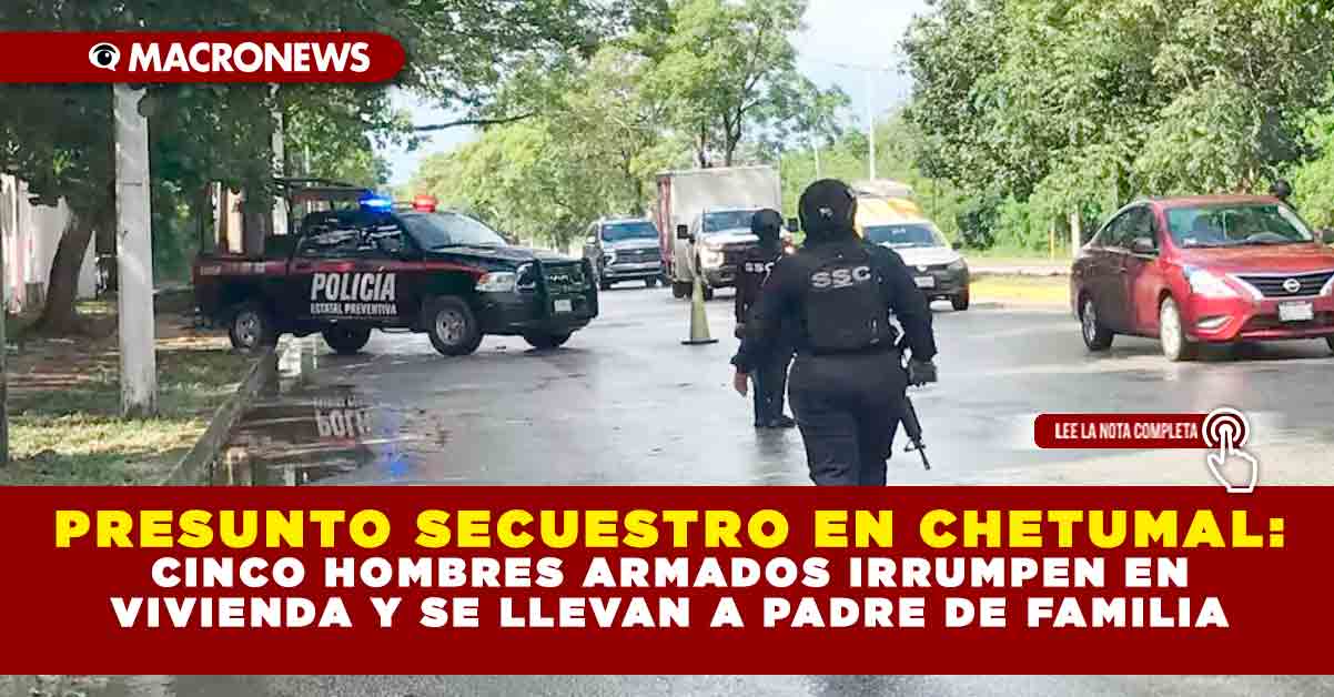 Redacción Macronews.- Alrededor de la 01:00 horas del martes, se reportó la privación de la libertad de un hombre identificado como Lucio, de 39 años, en la colonia Payo Obispo de Chetumal, luego de que un grupo armado de cinco personas ingresara violentamente a su domicilio mientras dormía. El hecho ocurrió frente a sus tres hijos menores de edad, quienes fueron testigos directos de la agresión.
