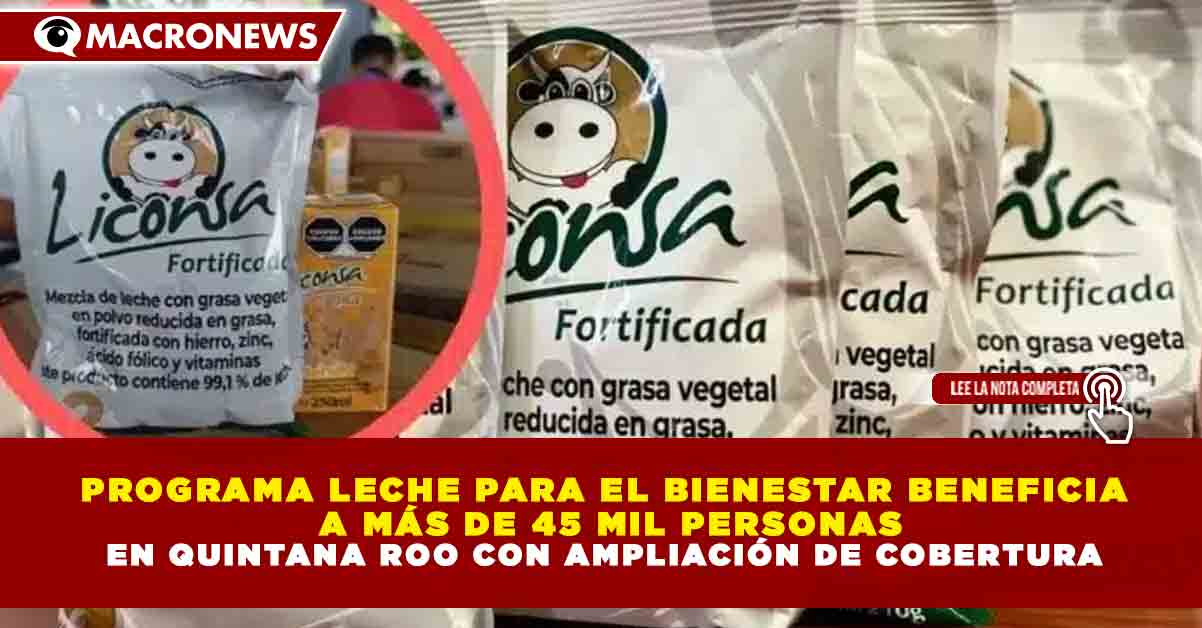 Redacción Macronews.- El Programa Leche para el Bienestar amplió su cobertura en Quintana Roo, alcanzando a más de 45 mil personas beneficiadas en distintos municipios del estado, como parte de las acciones de apoyo alimentario impulsadas a nivel federal.