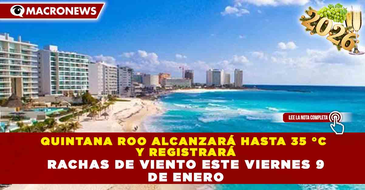 Redacción Macronews.- Este viernes, Quintana Roo presentará un ambiente caluroso en gran parte de su territorio, con temperaturas máximas que podrían alcanzar entre 33 y 35 grados Celsius, además de rachas de viento moderadas a fuertes en zonas costeras, de acuerdo con el pronóstico meteorológico.