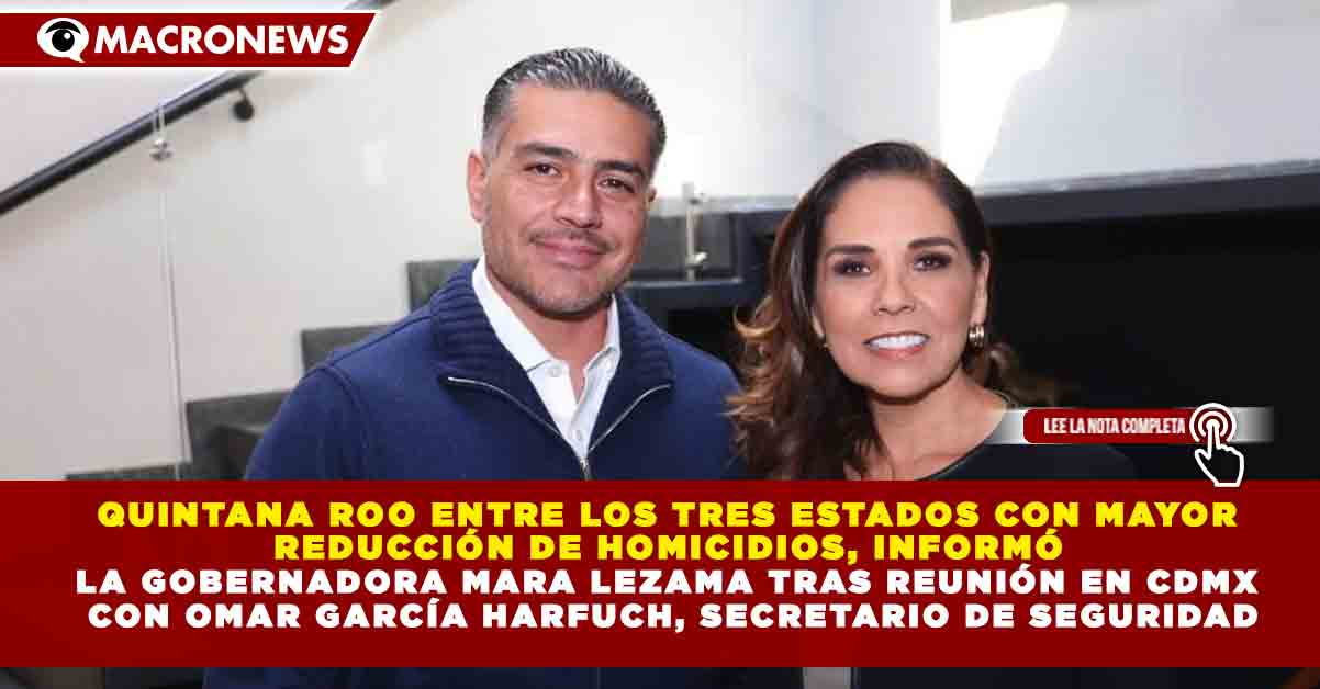 Redacción Macronews.- En un encuentro estratégico para consolidar la pacificación del Caribe Mexicano, la gobernadora de Quintana Roo, Mara Lezama Espinosa, se reunió con el secretario de Seguridad y Protección Ciudadana del Gobierno de México, Omar García Harfuch. Durante la sesión de trabajo, se reveló que Quintana Roo ha logrado un avance histórico al colocarse dentro de las tres entidades federativas con mayor reducción en el índice de homicidios dolosos en todo el país, resultado de la implementación de la Estrategia Nacional de Seguridad a nivel local.