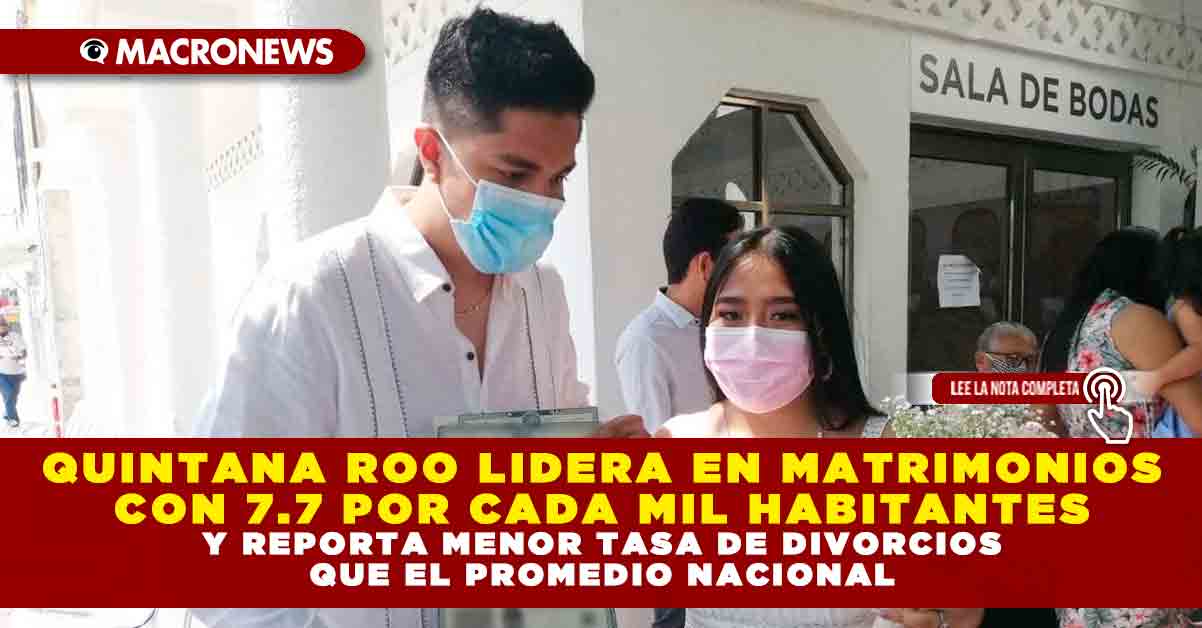 - Quintana Roo lidera en matrimonios con 7.7 por cada mil habitantes y reporta menor tasa de divorcios que el promedio nacional