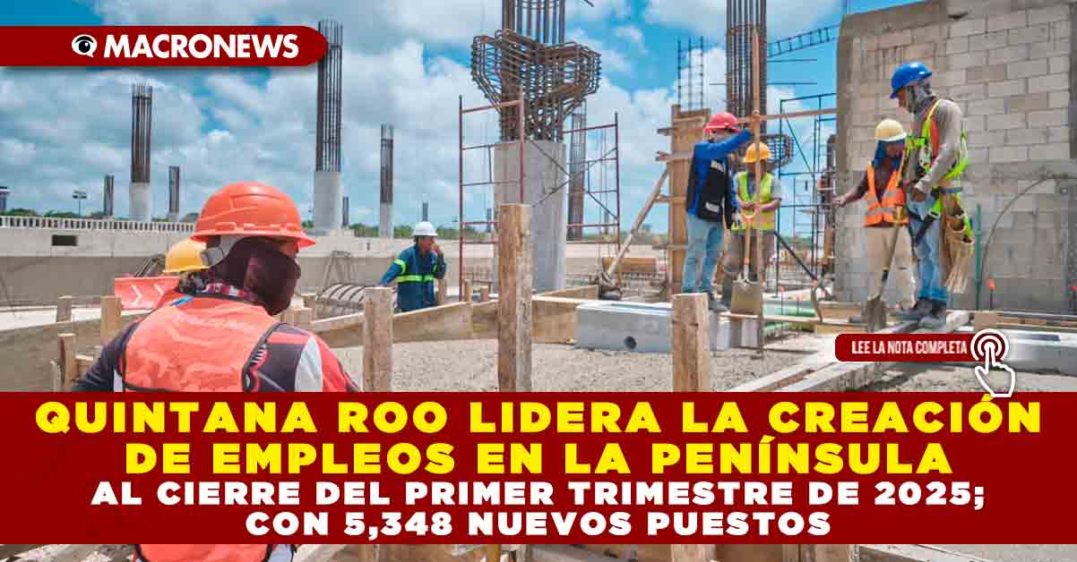 Redacción Macronews | Por Santiago Ramírez.- Al cierre del primer trimestre de 2025, Quintana Roo se consolidó como la entidad líder en la generación de empleos en la Península de Yucatán, al crear 5,348 nuevos puestos de trabajo, según el reporte más reciente del Instituto Mexicano del Seguro Social (IMSS).