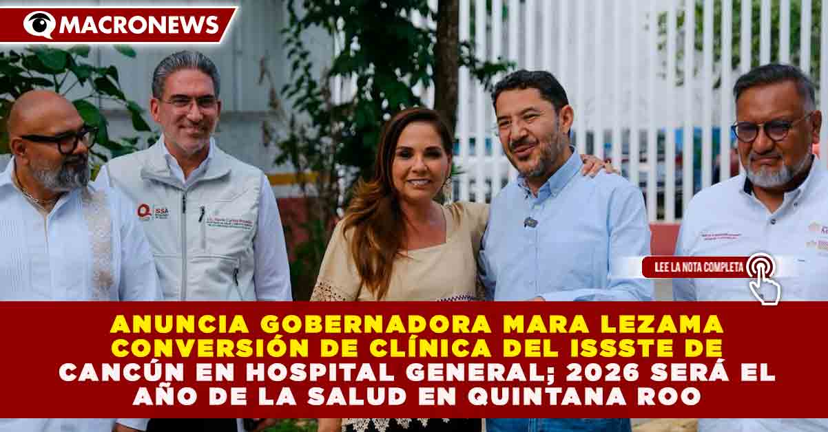 Redacción Macronews.- La gobernadora de Quintana Roo, Mara Lezama Espinosa, anunció formalmente que el año 2026 ha sido declarado como el «Año de la Salud» en la entidad, lo que implicará una inversión sin precedentes en infraestructura y equipamiento médico. Entre las acciones más destacadas se encuentra la conversión de la actual clínica del ISSSTE en Cancún en un Hospital General que incrementará su capacidad operativa de 19 a 90 camas, una expansión del 373% en su disponibilidad hospitalaria para derechohabientes.
