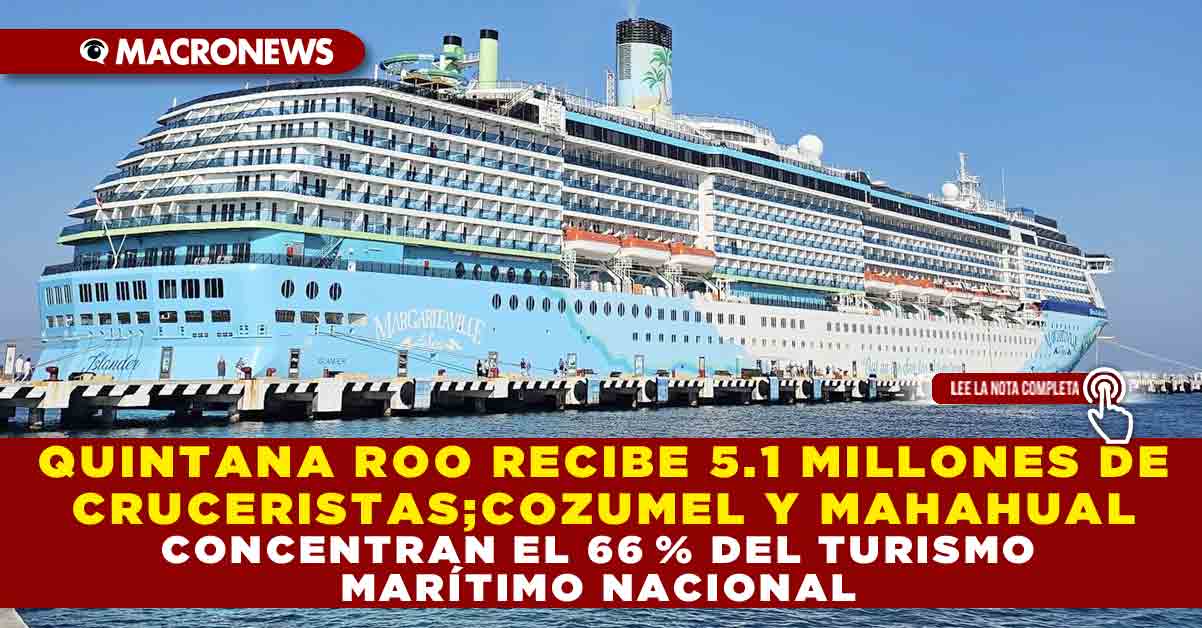 Redacción Macronews.- Entre enero y septiembre de 2025, los puertos de Cozumel y Mahahual en Quintana Roo han recibido más de 5.1 millones de cruceristas, lo que representa un incremento del 5.2 % respecto al mismo periodo del año anterior. Esta cifra consolida al Caribe Mexicano como el principal destino de cruceros en México, al captar el 66 % del total nacional, que asciende a 7.7 millones de pasajeros.